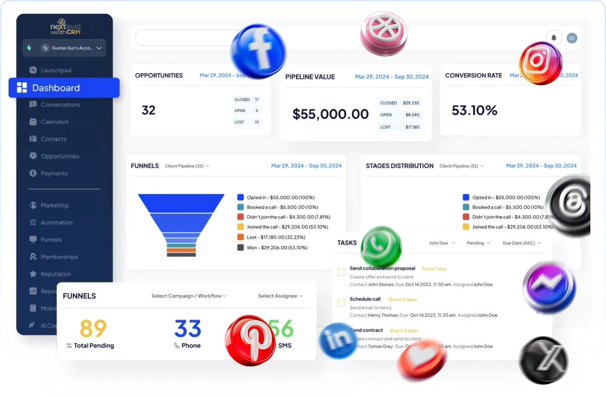 Get full access to the Next Level Wealth CRM for 14 days and experience a complete system built to help you launch faster, manage your leads, and automate your business effortlessly with everything already set up and ready to go.