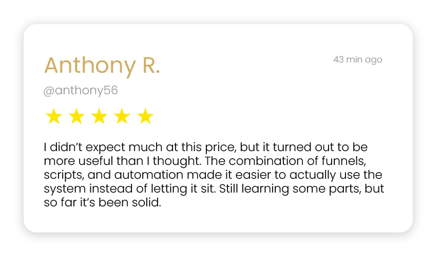 You can get your funnel and system live within a few hours. Since everything is plug-and-play, there’s no need to build from scratch.