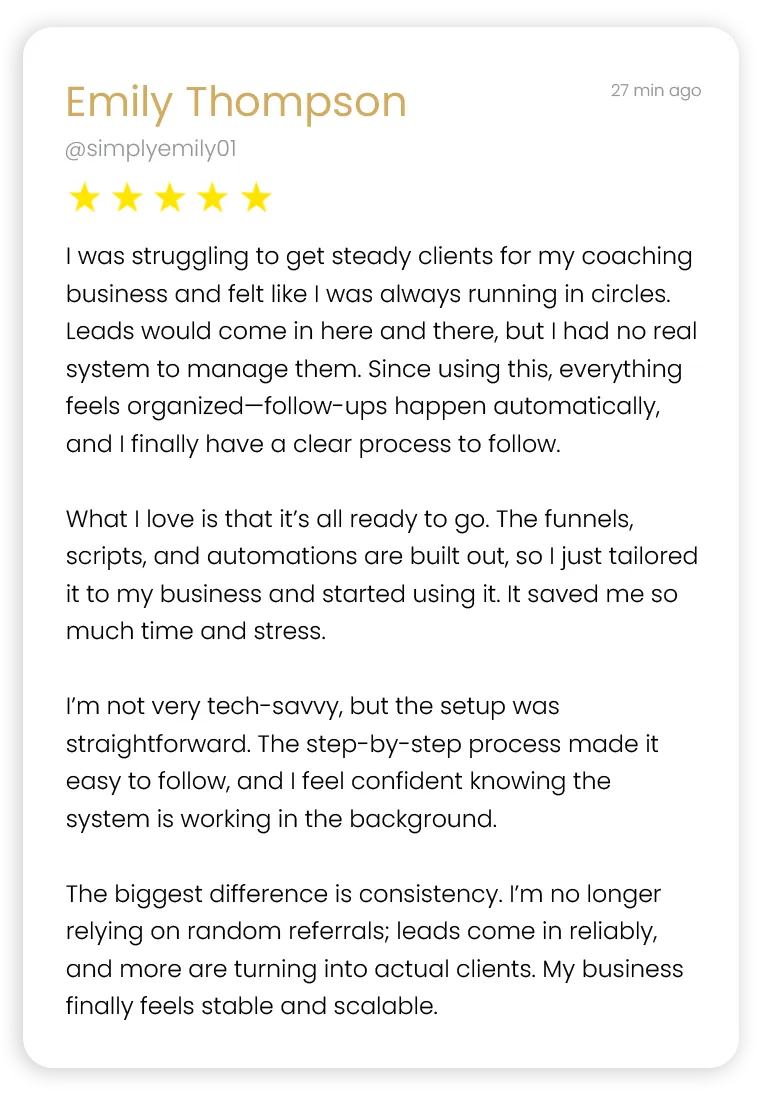 Pre-loaded inside your Go High Level snapshot, these proven plug-and-play email sequences are designed to instantly build trust, automatically follow up so no leads slip through, and keep you top-of-mind turning inquiries into paying clients without chasing.